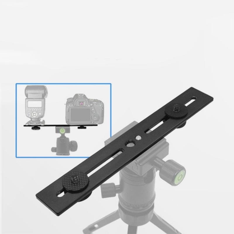 This camera mount features a durability aluminum alloy construction with a total load capacity of 11.02lbs, enabling simultaneous mounting of two cameras and two flashes for balanced photography setups, making it an essential photography accessory.