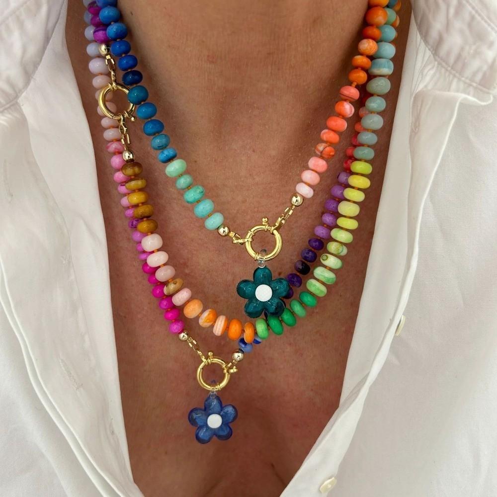 Colorful Rainbow Beaded Necklace Bohemian Choker Necklace New Flower Pendant Necklace Jewelry