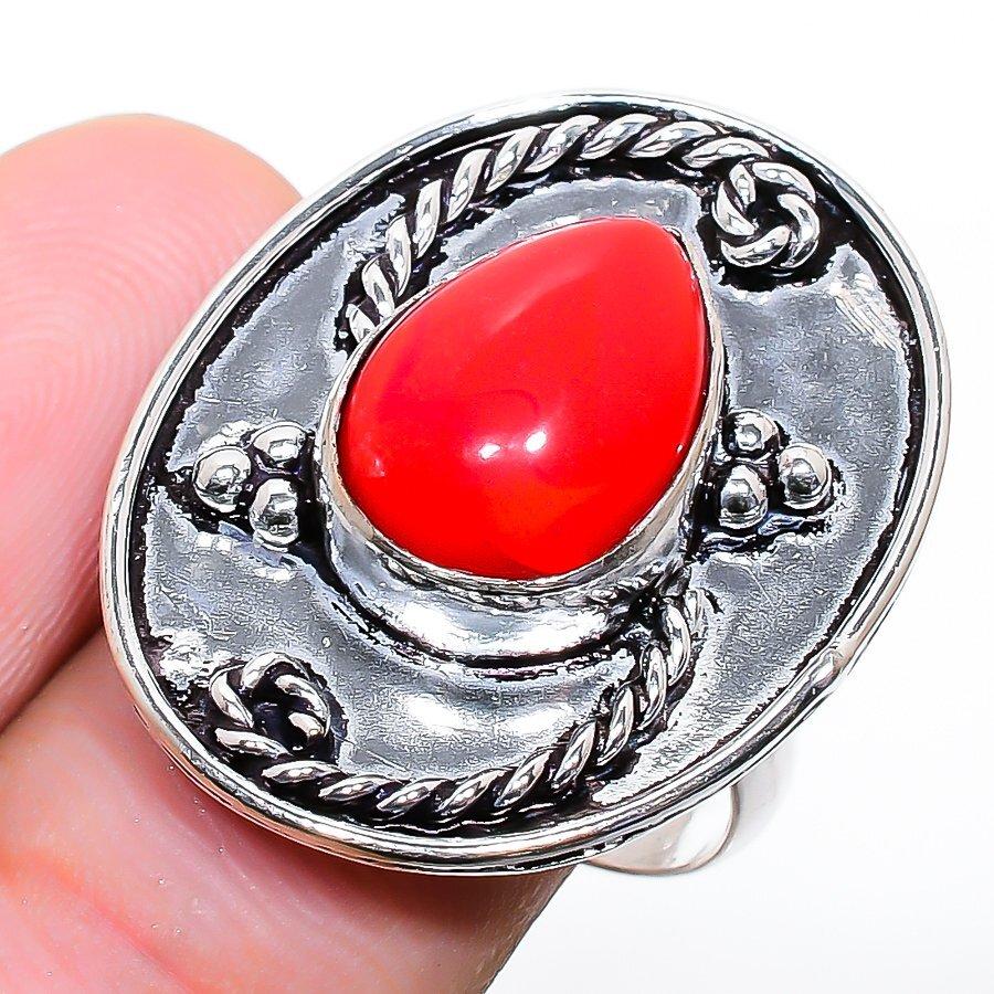 Title:- Italian Red Coral Gemstone 925 Silver Jewelry Ring 7