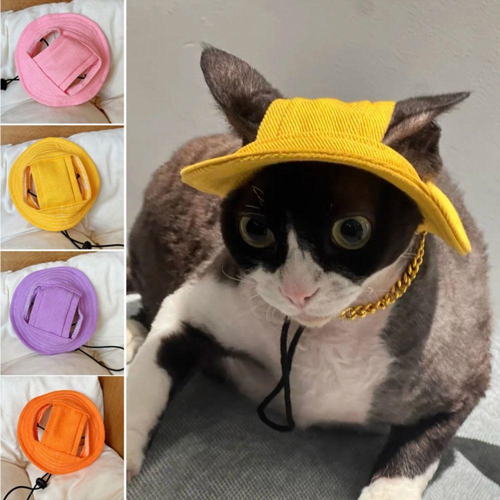 Solid Color Pet Sunshade Cap Cotton Pet Sunscreen Tie Hat Dog Cat Bucket Hat Sphynx Hairless Cats
