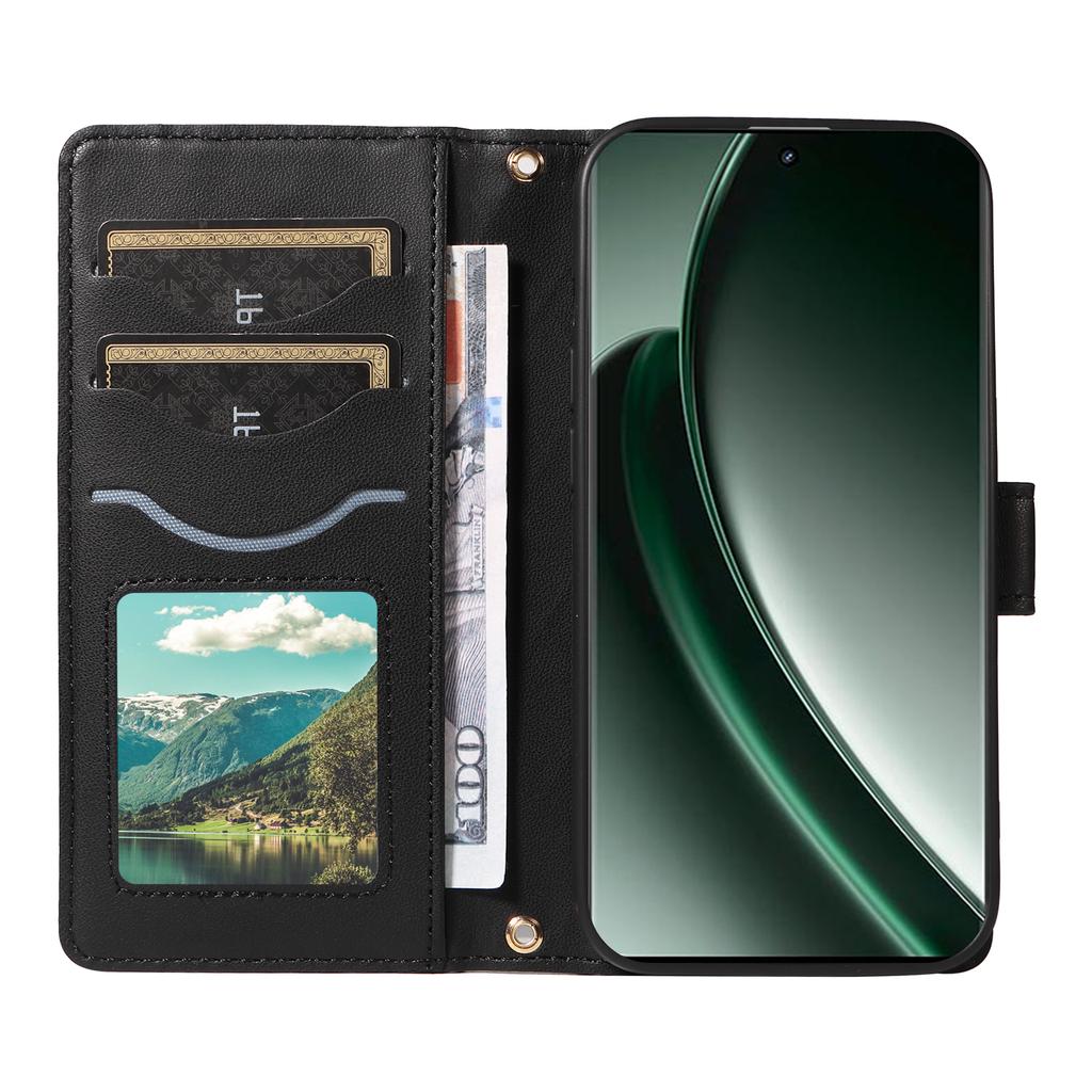 For Realme GT 6 5G Case Wallet Rhombus Leather Phone Cover with Shoulder Strap,Wrist Strap