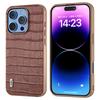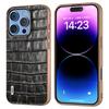 ABEEL For iPhone 16 Pro Case Electroplating Phone Cover Crocodile Texture Genuine Cow Leather+TPU Protective Case