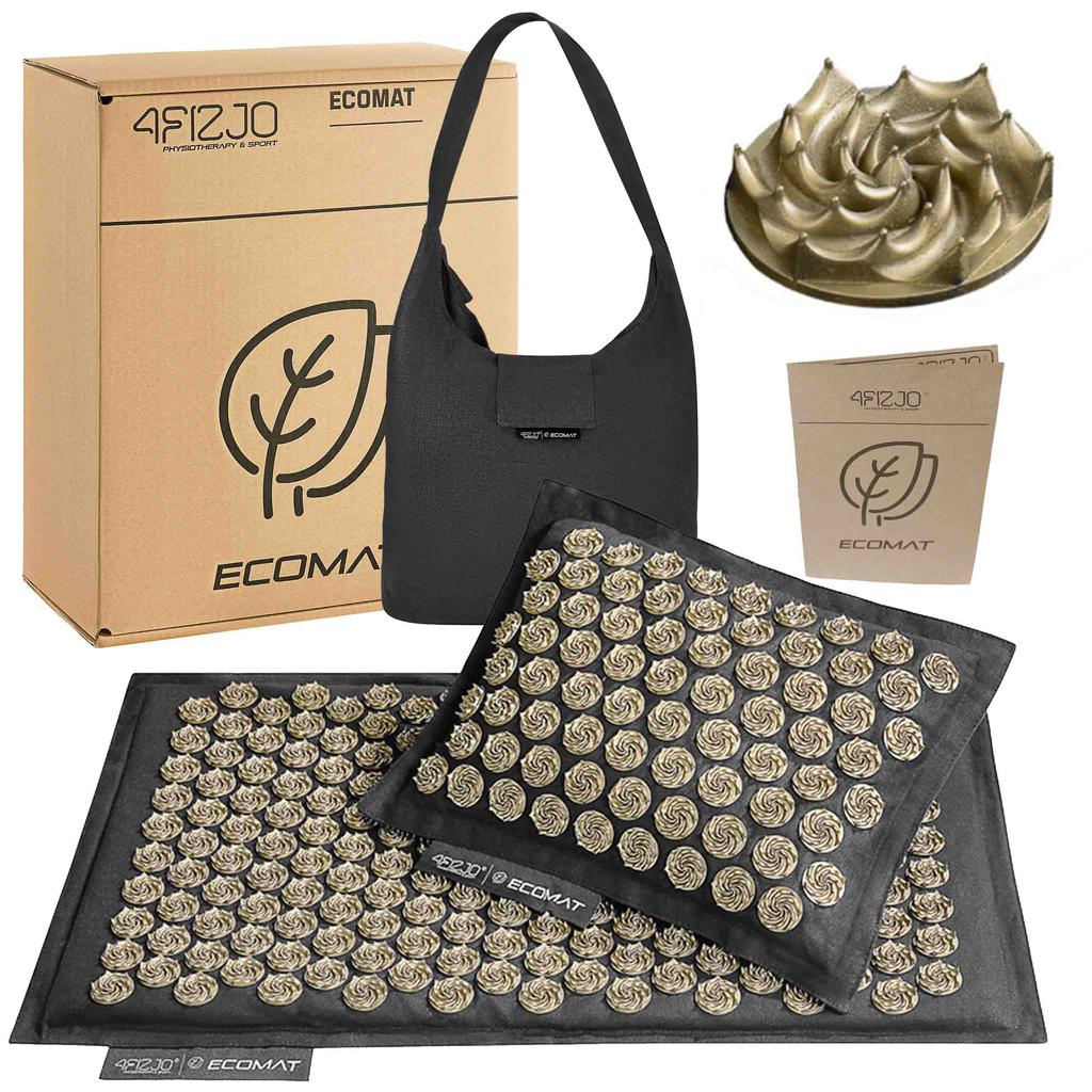 4FIZJO ECO Acupressure Mat 68x42cm with Buckwheat Hulls and a Pillow, Black and Gold