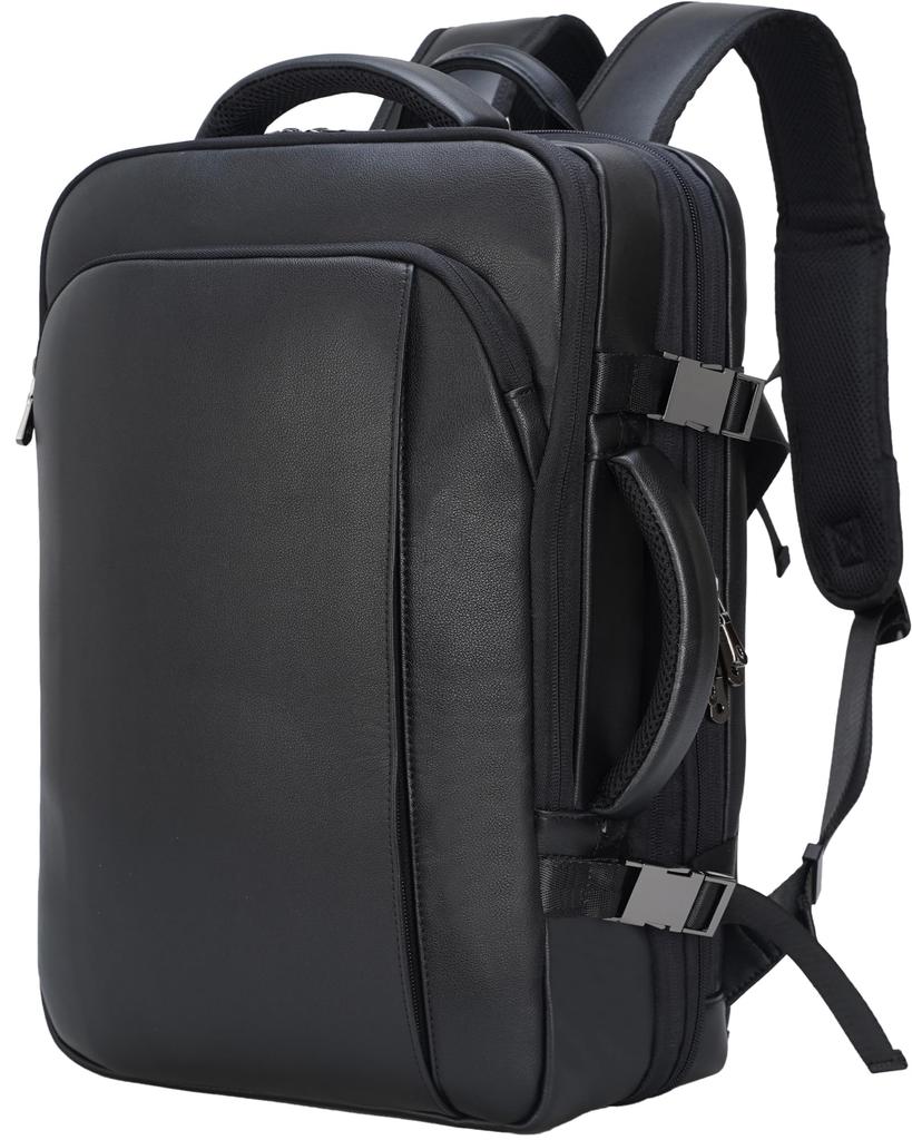 [Product Information] Material: Calfskin, Color: Black, Size: 44cm x 31cm x 17cm-25cm Expandable, Weight: Approximately 2kg, Fits 15.6-inch PC, A4 files, Capacity: 20L (expanded) - 30L, Functionality: Expandable gusset, wet/dry compartment, waterproof genuine leather, chest strap, carry-on bag, anti-theft rear pocket, Pockets: Two front zip pockets, Three-layer organization: 1) Left and right zip pockets (interior: two zip pockets, five open pockets, two pen holders), 2) Full-open clothing pocket (interior: one mesh pocket, one wet/dry compartment), 3) Laptop zip pocket (interior: one padded laptop compartment, one tablet compartment, one open pocket), Hidden rear anti-theft zip pocket, Ideal for business backpacks, travel bags, and Christmas gifts. Warranty: One-year free repairs.
