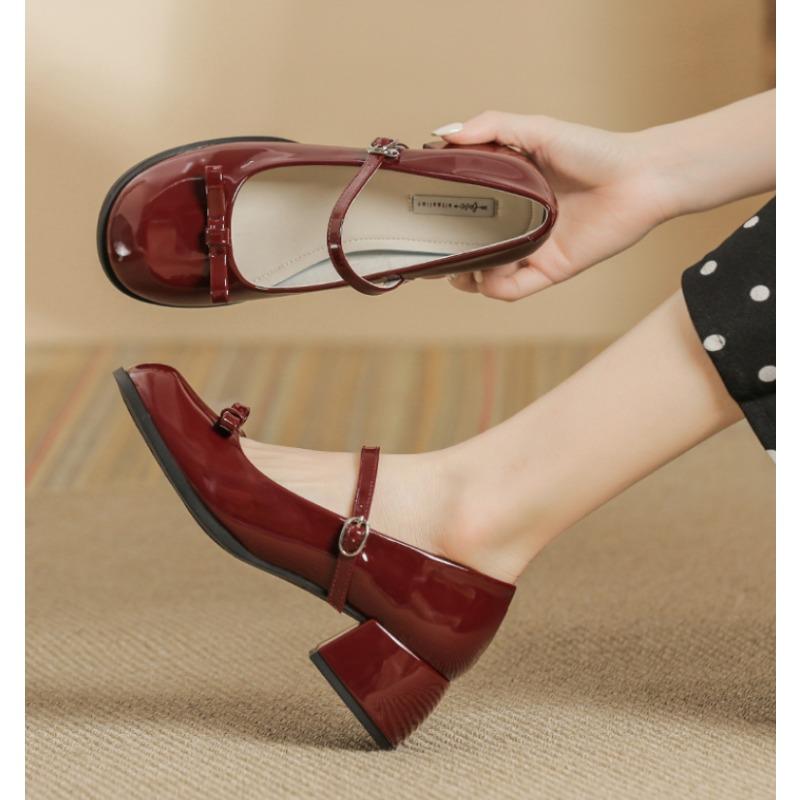 Spring Thick Heel Women Mary Jane Shoes Shallow Ladies Casual Butterfly-knot Shoes Eelgant Dress Leather Shoes