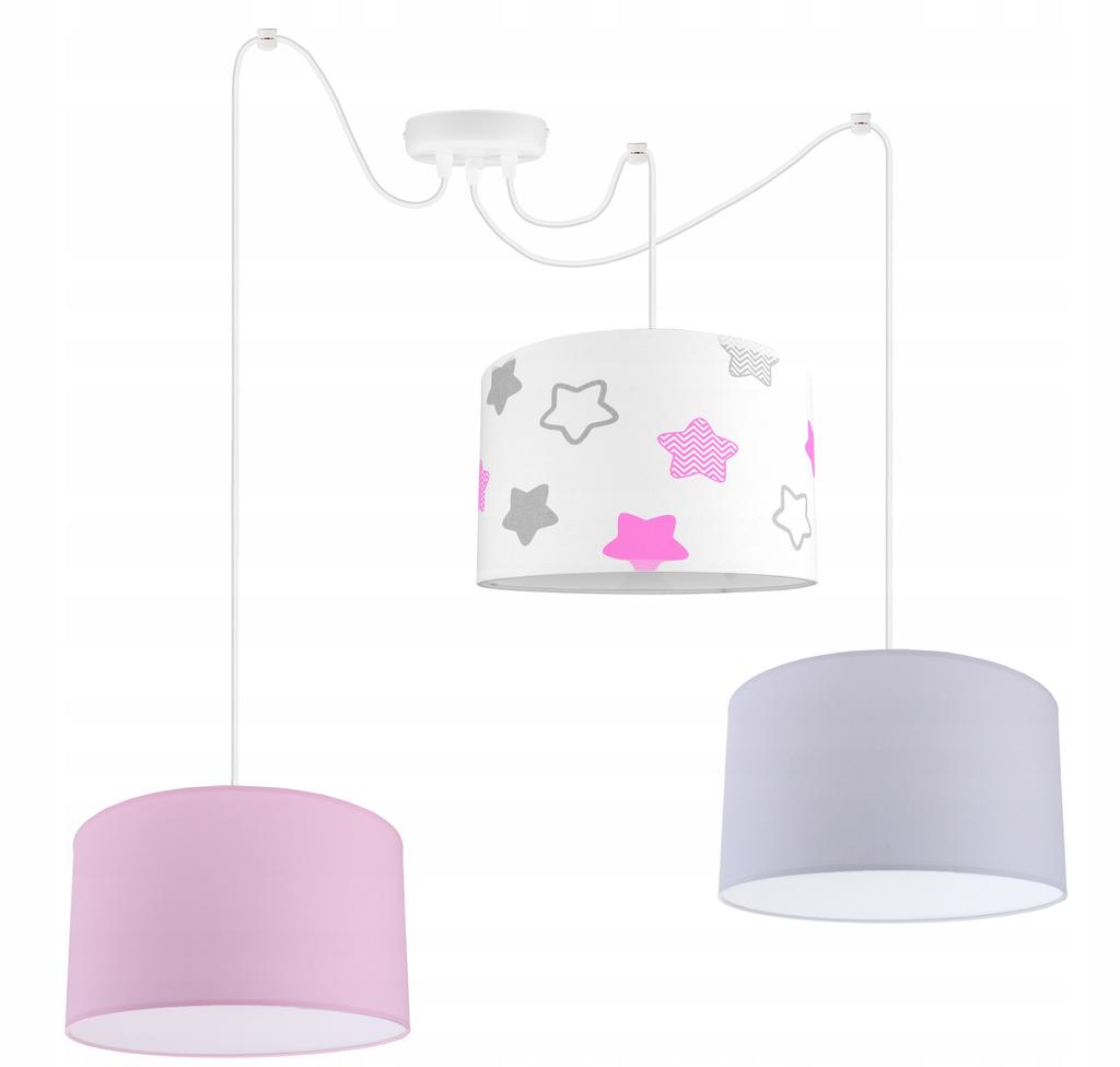 CEILING HANGING LAMP CHILDREN'S LAMP SHADE CHILDREN'S CHANDELIER LED SPIDER LAMP DIUNA 2256/3/Wmanufacturer: Light-Homeframe color: whitelampshade colors: white, light gray, green, navy blue, blue, heather, pinklampshade patterns: pink stars, green stars, blue flamingos, green flamingos, pandas, rabbitsmaterial of construction: metallampshade construction: fabric, PVC, metal framepower supply: ~230 [V], no transformer requiredlight source: E27 bulb (not included)height adjustment: yeslampshade height: 20 cmtotal height: max. 200 cmMounting: wall plugs (not included)Product code: SPIDER DIUNA 2256/3/WThe lamp comes with an instruction manual and assembly instructions!Other models from the SPIDER DIUNA series are available on our auctions Time to change your apartment decor! Our unique children's hanging lamp will transform your arrangement, giving it a unique character. Stylish design, solid construction, and the perfect color combination beautifully decorate interiors. The lamp's unique appearance suits any type of room. The lighting has space for three light sources. SPIDER DIUNA LampA stunning lamp that will add a unique character to your interior. The lighting will beautifully complement a children's room. The lighting can be adjusted in height up to 200 cm. The lamp is powered by the most popular type of E27 light bulbs with a maximum power of 60W.You can buy the appropriate bulbs in a set with the lampLamp features:Easy and quick assembly that won't cause you any difficultiesNew, Polish productSolid construction!Unique, original lampshade shape!Lampshade height adjustmentDesigner and modern lamp style! It will certainly add a lot of style to the interior.Possibility of turning on the lamp 2/1 or 3 times.The set includes:Complete lamp ready for installation.Instruction manual.Connection block.Purchase document.Lamp dimensions:Height of the ceiling 12 cm.Total width 35 cm.Height (adjustable) up to 200 cm.Lampshade width 35 cm.Lampshade height 20 cm.Fully assembled lamp - you don't have to assemble it yourself. Available colors:Lampshade patterns:pink stars, green stars, blue flamingos, green flamingos, pandas, rabbitsColors Lampshades: white, light gray, green, navy blue, blue, heather, pinkConstruction colors: whiteProvide information about the selected lamp color in the message to the seller.In the absence of such information, the lamp shown in the main photo will be sent. Care for details: Assembly instructions: