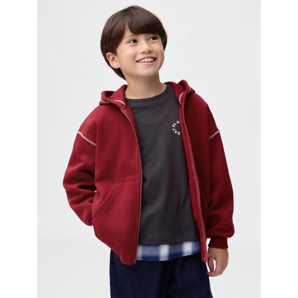 The GU KIDS Heavyweight Sweat Full Zip Hoodie is designed for both genders and is available in sizes from 100cm to 160cm for kids and teens.