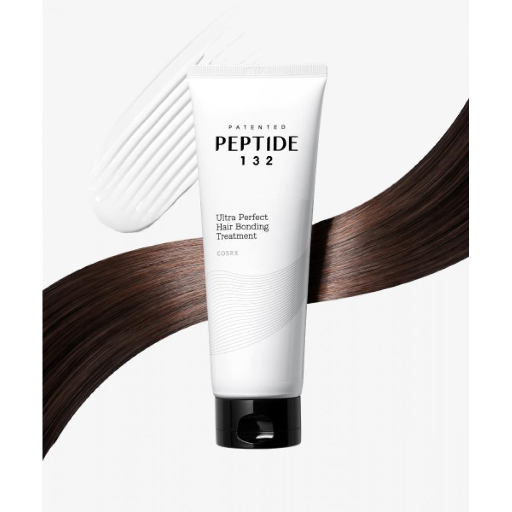 COSRX [Large Size] Peptide-132 Ultra Perfect Hair Bonding Treatment 240mL is a treatment that restores the internal structure of damaged hair and strengthens the cuticle for added shine. This product contains Trin Peptide-132 HCl, developed exclusively by COSRX, and is suitable for all hair types. Used after shampooing, it penetrates deep into damaged hair and has been experimentally confirmed to improve hair tensile strength by 11.1%. After use, it reduces frizz and provides smooth, shiny hair.