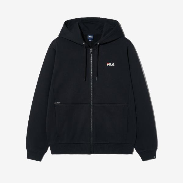 The Fila FILA Basic Hooded Zip-Up is a lifestyle essential designed for both men and women, featuring a STANDARD fit. It is a versatile basic design suitable for daily wear, made with a French terry fabric blend of cotton and polyester for a soft touch and excellent breathability. The front has a generously sized pocket for practicality, and the hood includes adjustable strings for various styling options.