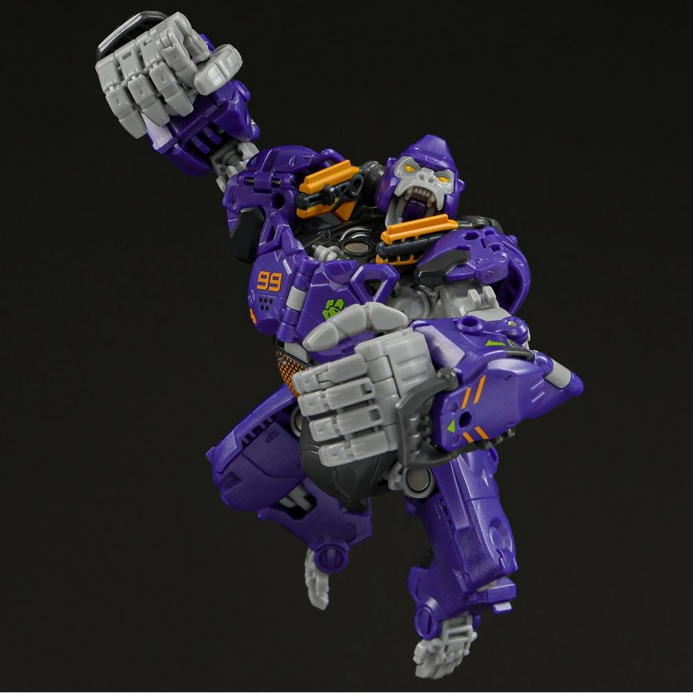 BeastBOX BB-70 Neo Gio is an action figure that can transform from a cube shape to a gorilla (or orangutan) shape. This product features a bright and vibrant purple color, has a simple transformation process, and can be played with or displayed without the need for batteries. The gorilla (orangutan) figure boasts high mobility and detail, allowing for various pose expressions.