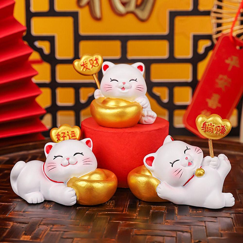 Cute Fortune Kitten Figurine Chinese Style Mini Cat Figurine Party Supplies