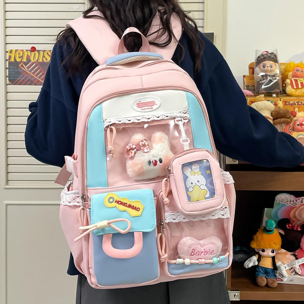 New Japanese High-value Schoolbag Ins Niche Junior High School Student Backpack Female Cute Contrasting Color Large-capacity Backpack