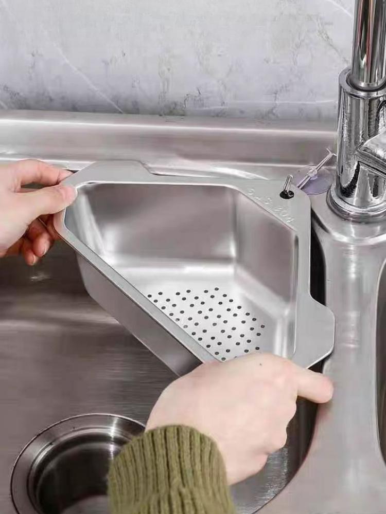 Stainless Steel Drain Basket Kitchen Sink Rack Wash Basin Sink Filter Triangular/square Fruit Vegetable Drainer Storage Rack