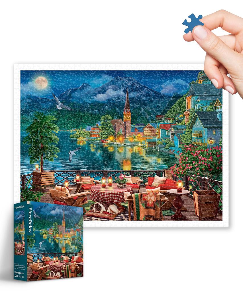 PieceRelax Plastic Jigsaw Puzzle Lakeside At No Broken Design 1200-Piece "Image World Hallstatt" (45x59cm) - Adult-Friendly, Difficult, Pieces,