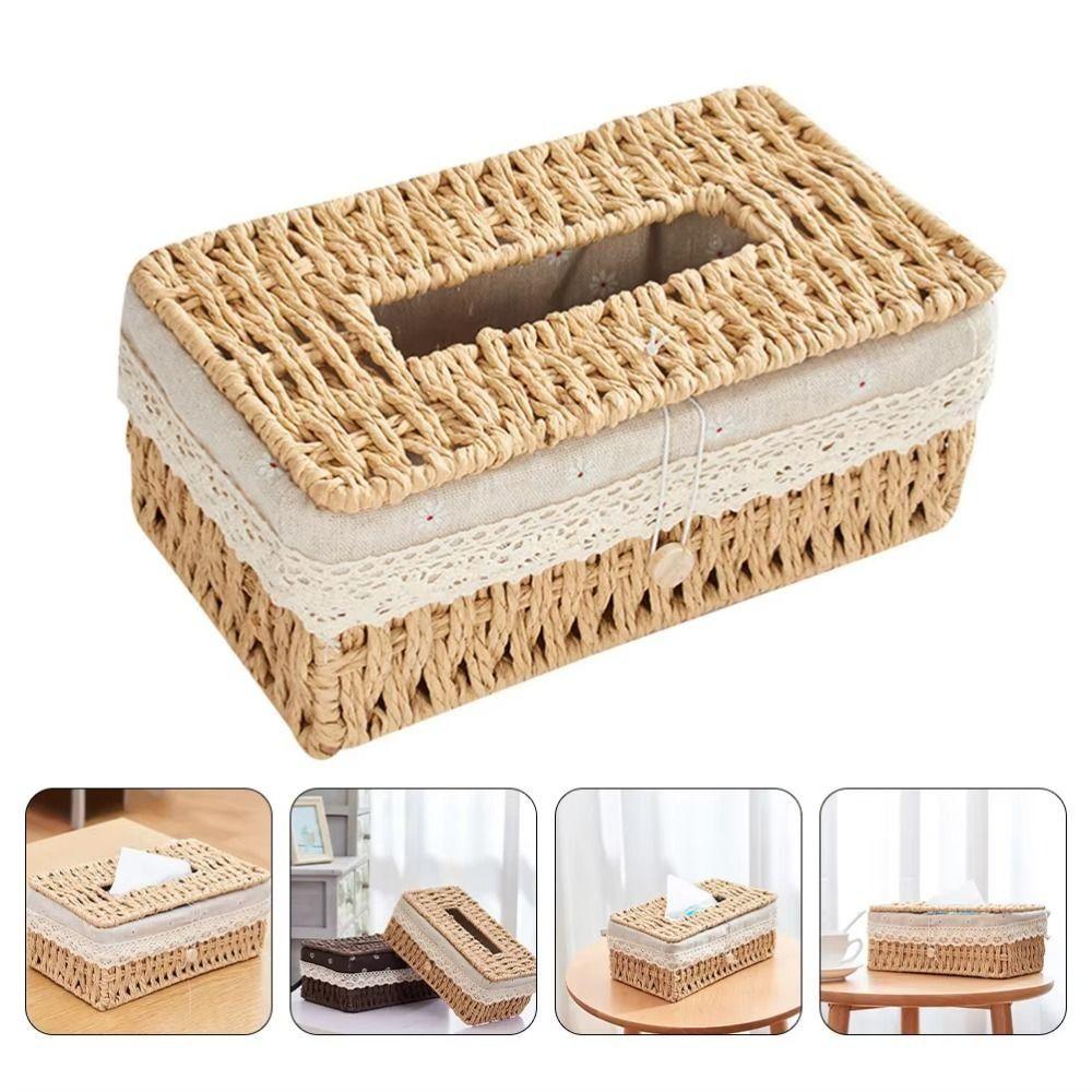 Japanese Style Rattan Woven Tissue Box Rectangular Napkin Box Simple Napkin Holder Tea Table