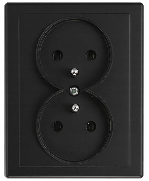 Double Socket with Grounding IP20 16A 250V Flush-mounted Matte Black