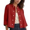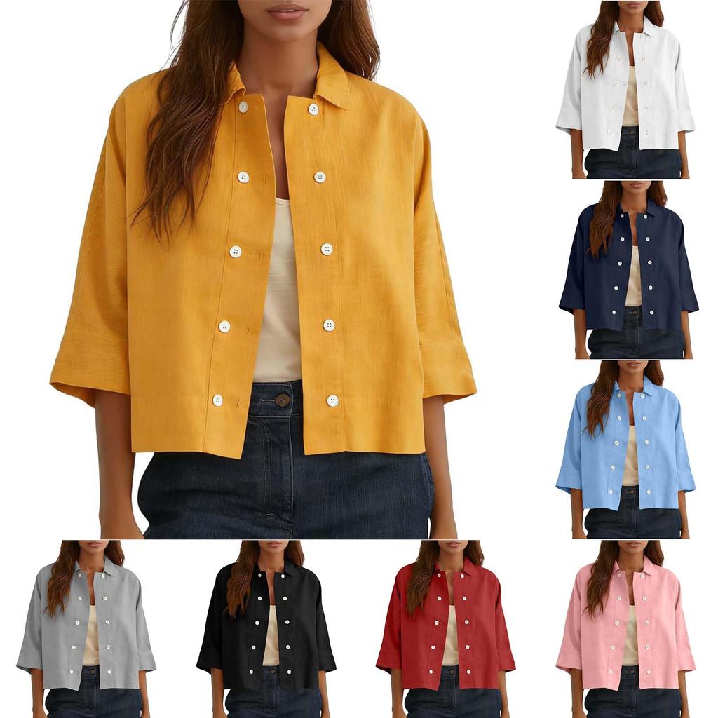 Women's Fashion -Color Cotton And Linen Double-breasted Short Half-sleeved Cardigan Top