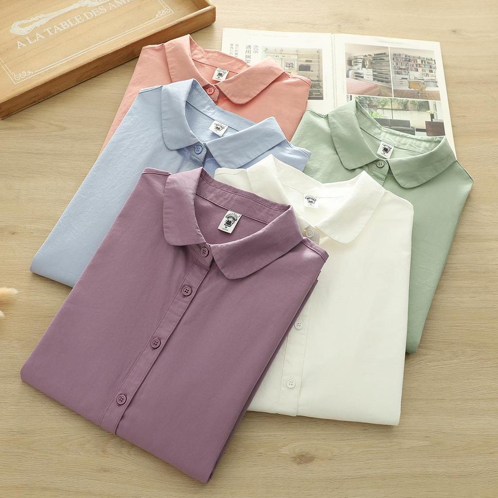 Spring Autumn Pure Cotton Women's Doll Collar Long Sleeve Shirt
