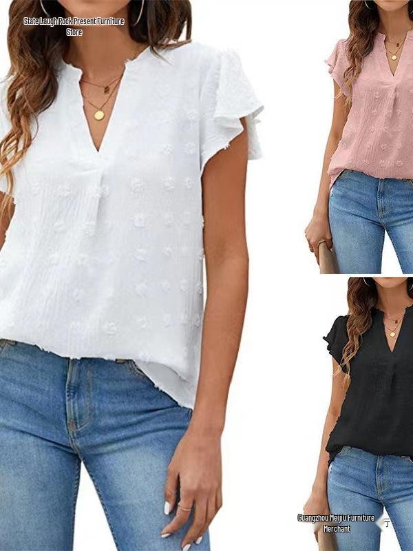European and American Women's Ruffle Chiffon Summer Shirt