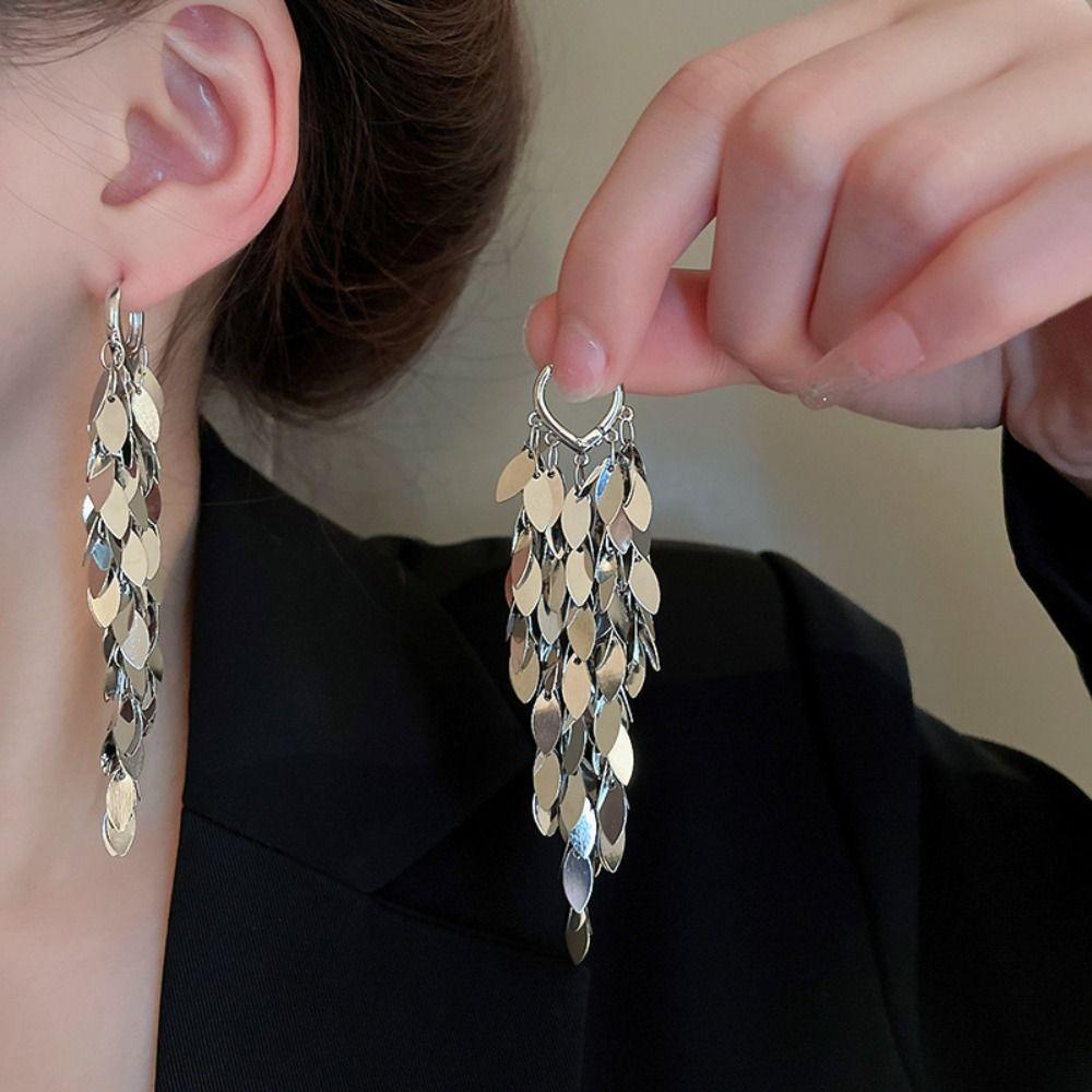 Korean Style Metal Sequin Earrings Bling Bling Gold Earrings Long Tassel Dangle Earrings Women