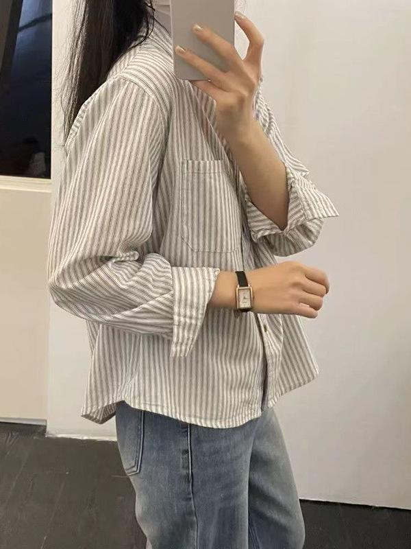 This artistic, long-sleeve top is perfect for both spring and autumn, offering a retro Korean style with its striped pattern. Made from soft cotton material, it ensures comfort and breathability. The loose fit provides a relaxed silhouette, while the turn-down collar adds a touch of sophistication. Featuring unique patchwork and quilted decorations, this cardigan combines charm and functionality, making it a standout addition to any wardrobe.