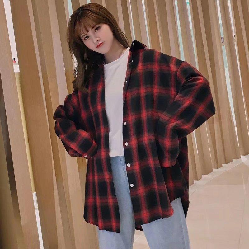 2026 Spring/Autumn Women's Korean Plaid Shirt - Loose, Retro Hong Kong Style, Trendy Long Sleeve Top