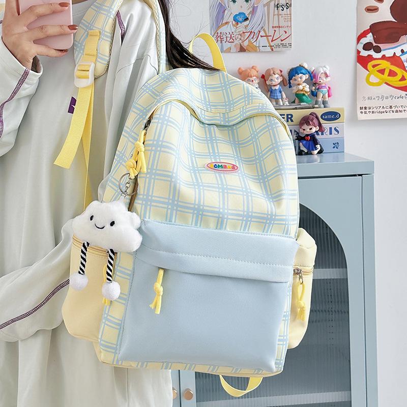 New Schoolbag Women's Japanese and Korean Ins Style High Value Plaid Backpack College Student Class Backpack