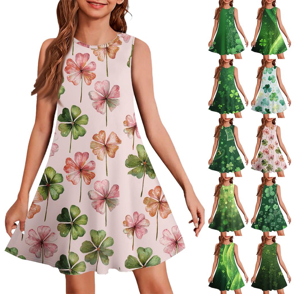 Girl Summer Dress Sleeveless Printed Color Casual Dress St. Patrick's Day