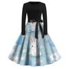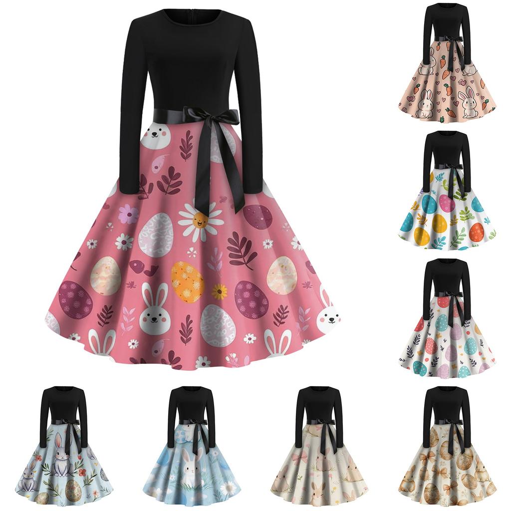 Women's Fashion Round Neck Casual Slim-fit Easter Printed Large Swing Long Sleeve Dress