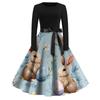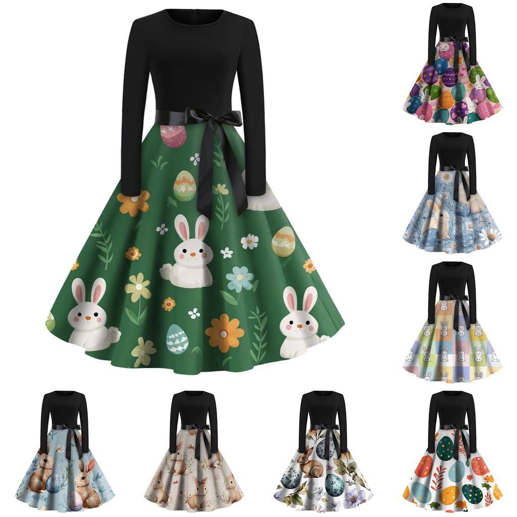Women's Fashion Round Neck Casual Slim-fit Easter Printed Large Swing Long Sleeve Dress