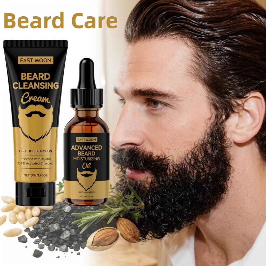 Beard Wash & Care Set: Beard Cleansing Cream + Beard Care Oil. Provides Cleansing and Care, Long-lasting Moisture, Prevents Dryness and Frizz.