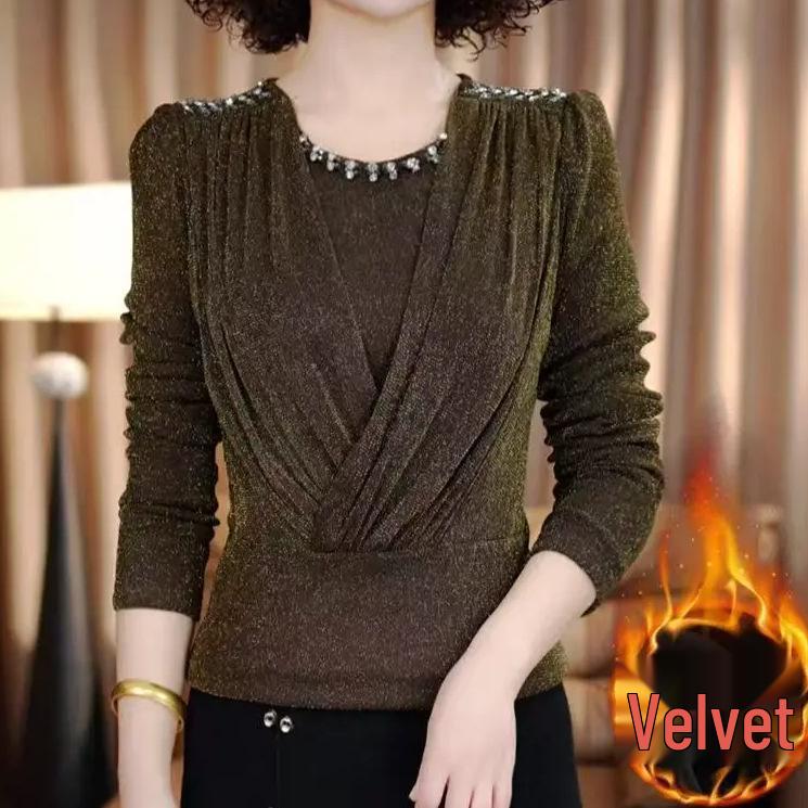 In Stock: Elegant Floral French Spring Blouse with Beaded Lace & Round Neck - Thickened Bright Silk Base Layer