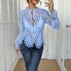 Elevate your autumn wardrobe with this stunning knit lace top, designed to offer both style and comfort. Crafted from quality polyester, this top features a solid pattern that easily complements any outfit. The standout feature is its elegant bell sleeves with intricate lace detailing and a frayed decoration, adding a touch of sophistication to your look. The long sleeves make it perfect for the cooler autumn months. Ideal for any casual outing or dressed-up event, this top effortlessly combines fashion and practicality.