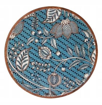 Talerz Drewniany Dekoracyjny 37 Cm Niebiesko Beżowy Naturalna Forma