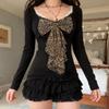 Leopard Print Lace Patchwork Y2K Skirt - European & American Sexy Slim Fit