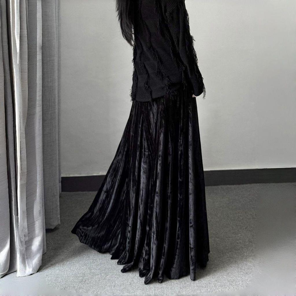 Elevate your autumn and winter wardrobe with this high waist velvet umbrella skirt, designed to combine elegance and comfort. Made from soft, luxurious velvet, this long skirt features a thickened design to keep you warm during the cooler months. Its slimming silhouette and hip-covering style offer a flattering fit, while the sportive print decoration adds a contemporary touch. Perfect for pairing with your favorite tops and boots, this skirt effortlessly blends style and function for the colder seasons.