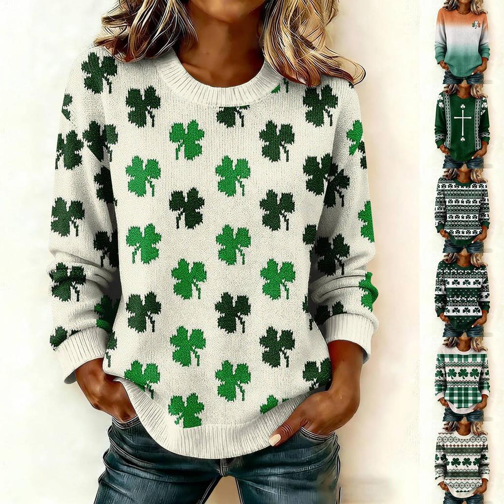 Women'S St. Patrick's Day Sweater Cute Fun Patrick's Day Sweater Spring Long Sleeve Knitted Sweater