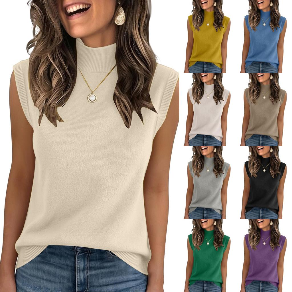 Women's Loose Knit Half Turtleneck Sleeveless Tank Top