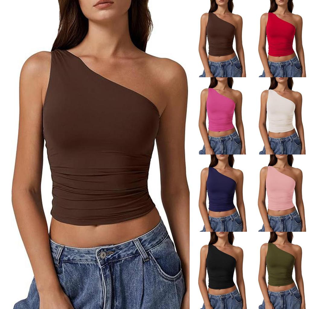 Women's Sleeveless One-Shoulder Slim Fit Sexy Tank Top