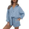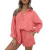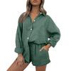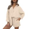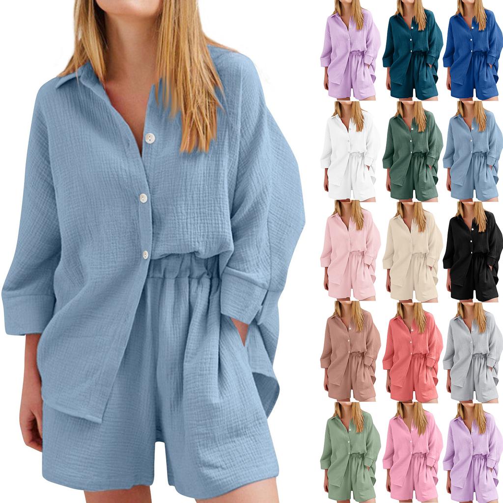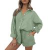 Women's Casual Color Long Sleeved Shorts Set, Crepe Home Set