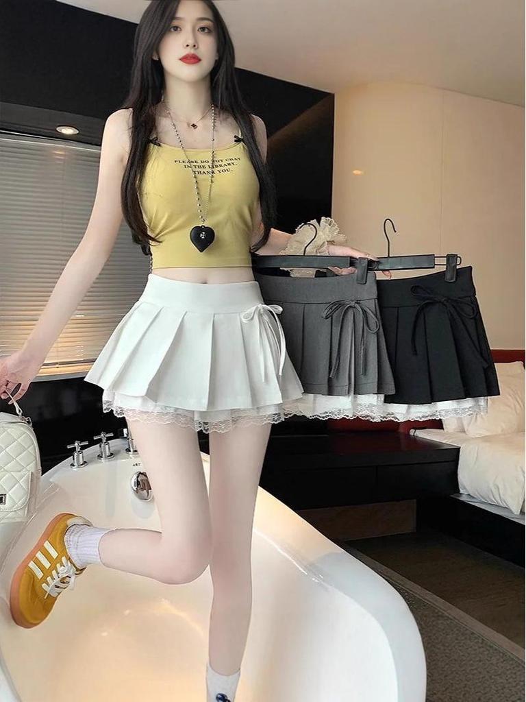 2025 Summer Sweet Pure Desire High-Waisted Pleated Lace Patchwork Ultra-Short Skirt