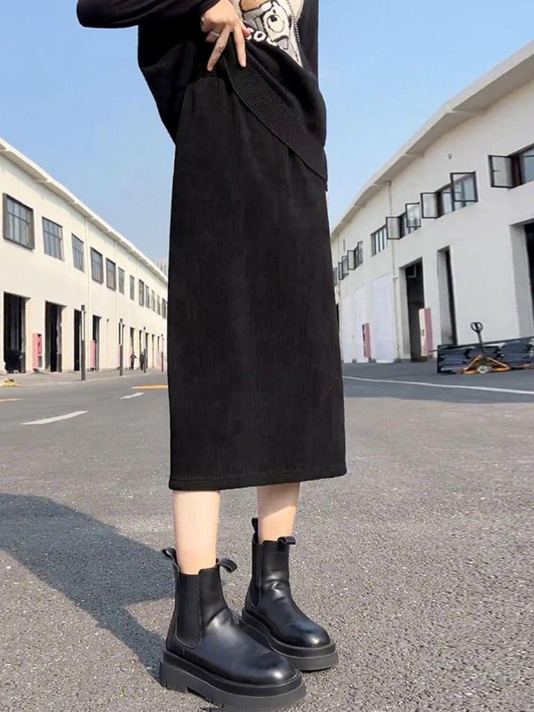Stay cozy and stylish this autumn and winter with this Black Corduroy A-line Skirt for Women. Designed with a classic solid pattern, this skirt features a plush interior made from polyester fiber, providing extra warmth and comfort. The thick corduroy material offers durability and elegance, making it a versatile addition to your seasonal wardrobe. Whether paired with boots or tights, this skirt promises to keep you warm and fashionable throughout the colder months.