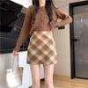 2025 Autumn Winter Retro Wool Plaid High Waist A-line Skirt - Japanese Style Petite Hip-hugging Women's Skirt