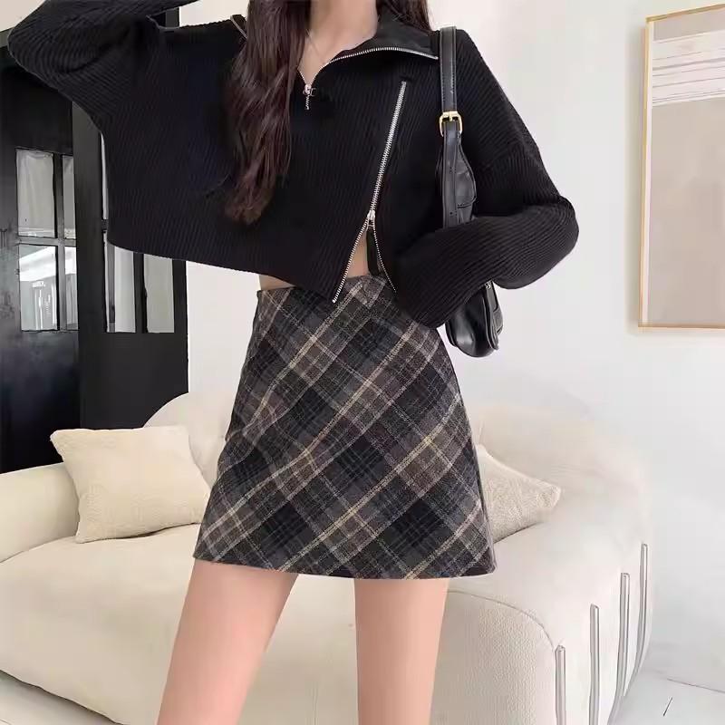 Embrace timeless elegance with this plus size A-line skirt, crafted from premium wool to keep you warm and stylish during autumn and winter. The retro plaid design exudes a vintage charm, while the slimming hip-hugging silhouette enhances your figure, making it a flattering addition to any wardrobe. Perfect for those who love fashion with a touch of classic sophistication, this short skirt offers both comfort and style for the cooler seasons.
