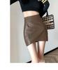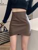 Brown Leather High-Waist Irregular Half Skirt for Women - Chic, Hip-Hugging, Coffee Color, Perfect for Spring & Autumn 2026.