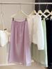 Korean Textured High-Waisted Drawstring Skirt with Mesh Hem and Back Slit for Women