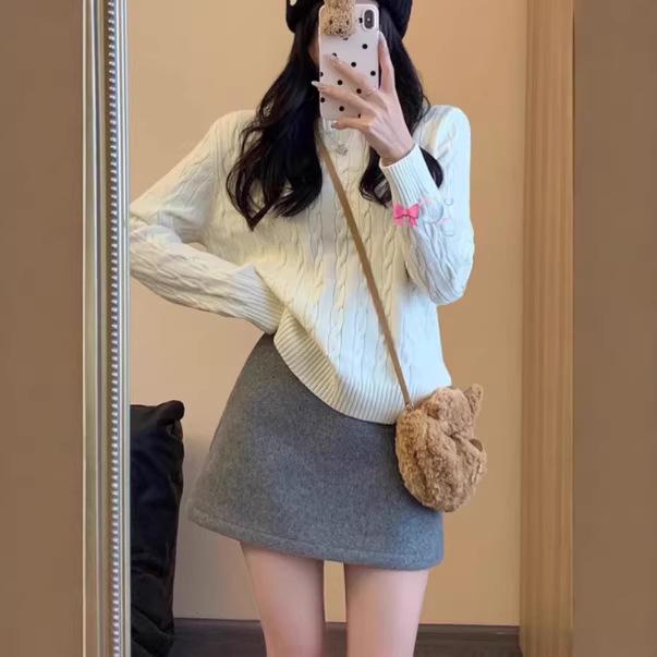 Girls' High-Waist Woolen A-Line Skirt - Casual Slimming Hip-Hugging Short Skirt for Autumn/Winter