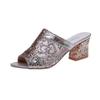 Large Size High-heeled Sandals for Women's Summer New Hollow Mesh Sequins, Fish Mouth Cool Slippers for Women