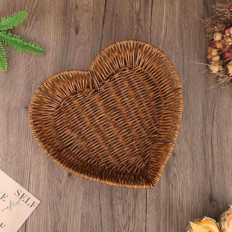 Handwoven Imitation Rattan Heart Desktop Storage Basket