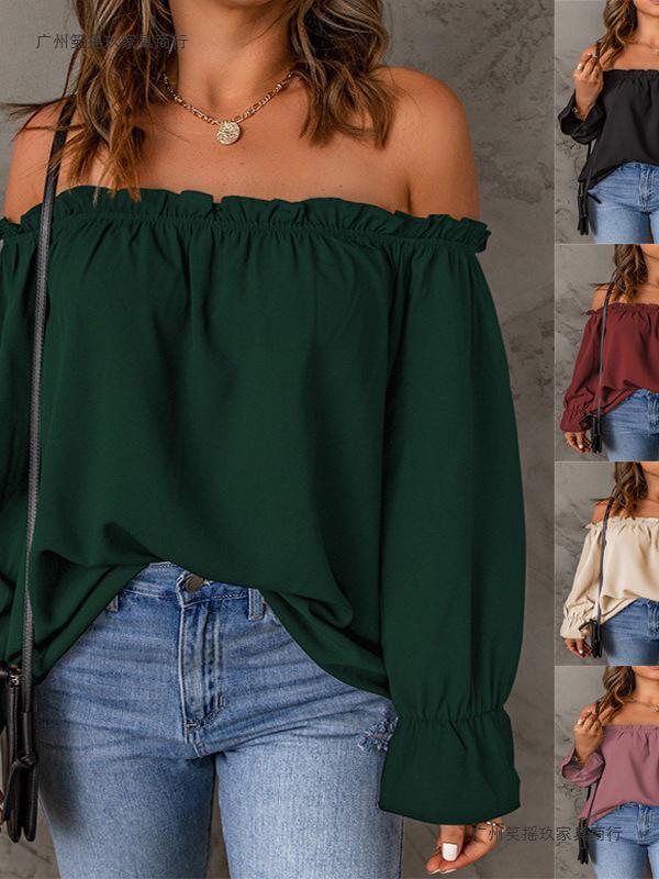 Elevate your wardrobe with this elegant Women's Off-the-Shoulder Chiffon Blouse, perfect for both European and American styles. Designed for a stylish look, this solid-color pullover is ideal for both spring and autumn seasons. Crafted from high-quality polyester, it offers a loose fit that ensures comfort and sophistication. The blouse features long sleeves and is adorned with a soft satin finish, adding a touch of luxury to any outfit. Whether you're dressing up for a night out or seeking a chic look for the day, this blouse effortlessly combines sexy and elegant elements to enhance your personal style.
